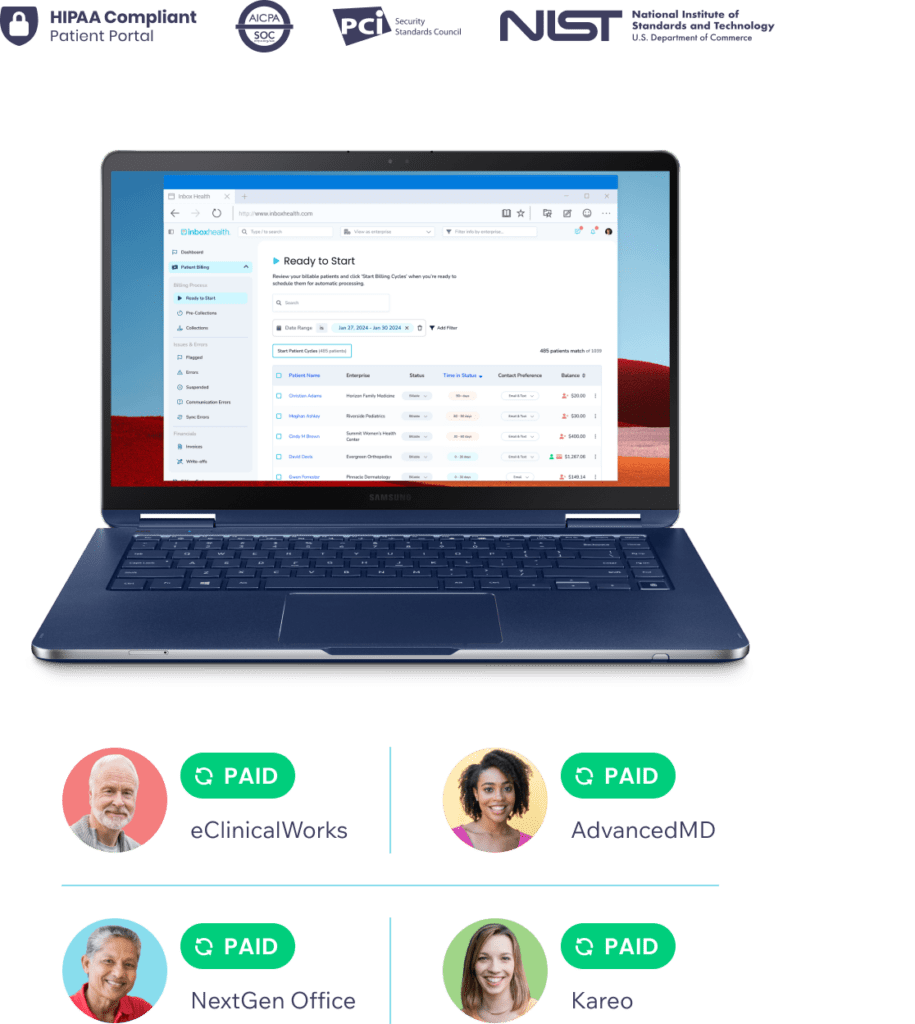 Top practice management systems leverage Inbox Health’s API integration to drive patient billing revenue for their clients.